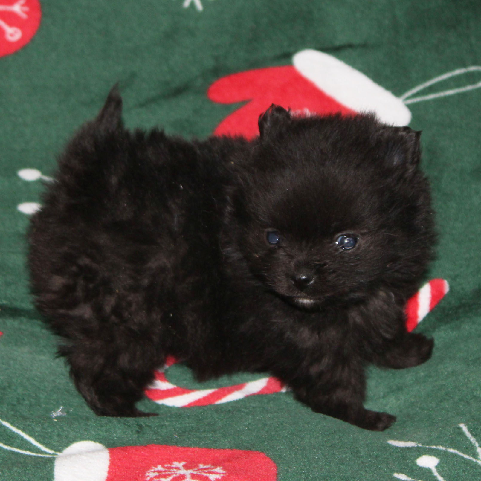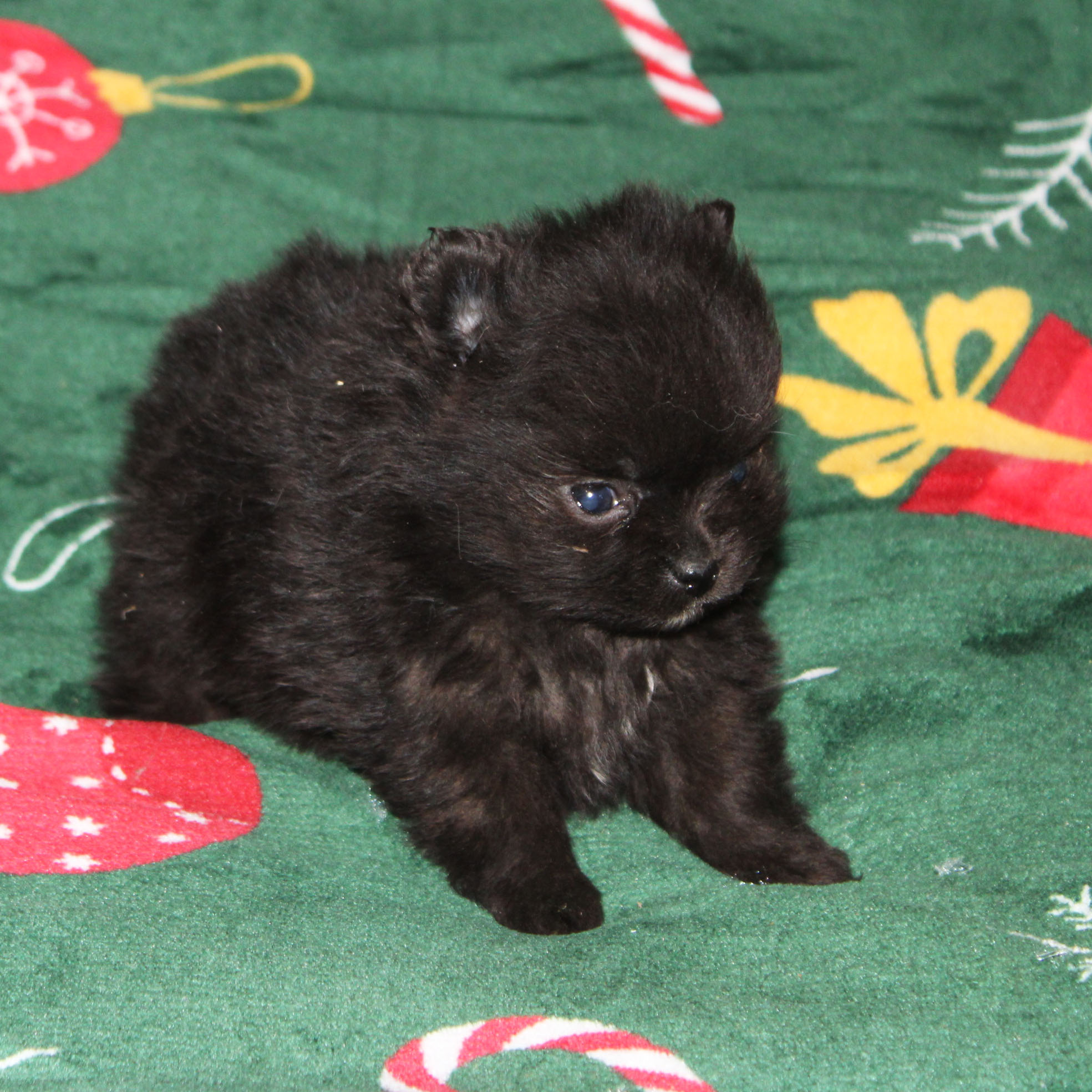 Nous proposons à la réservation une superbe femelle Spitz nain noire, née le 25 novembre,