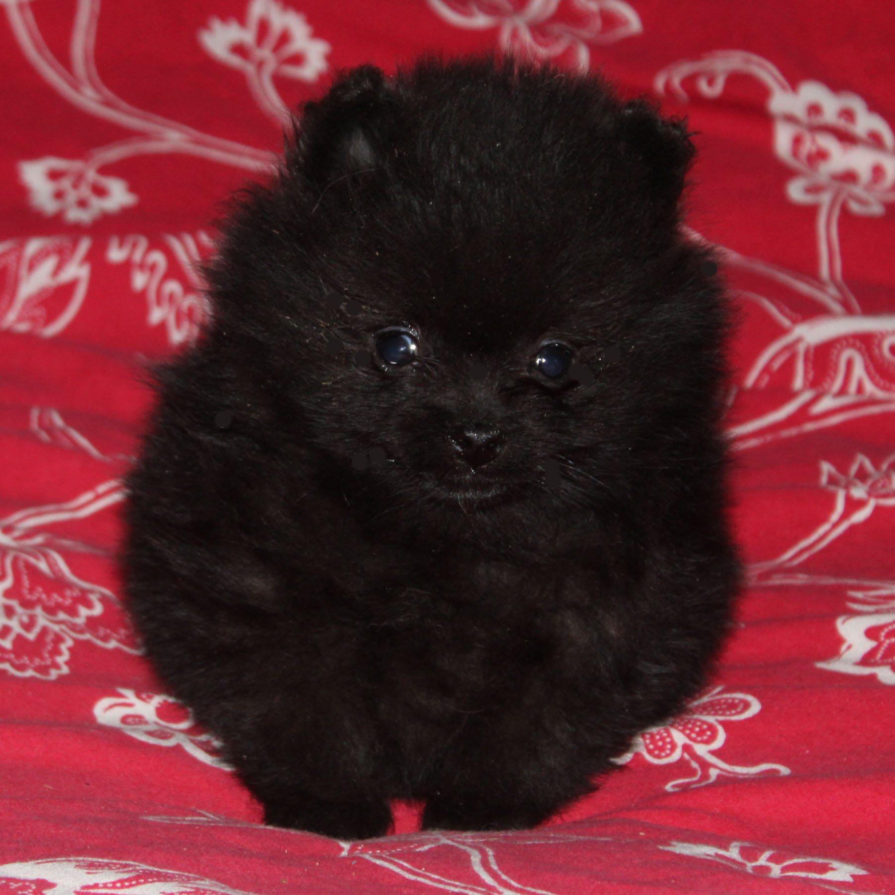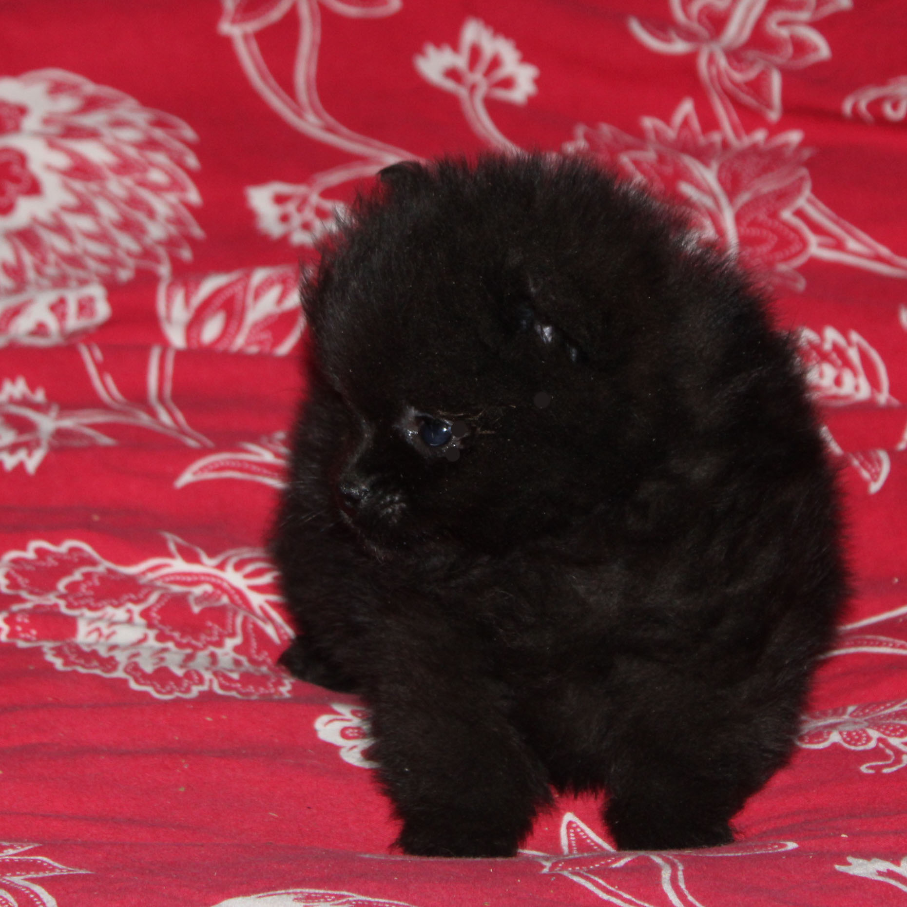 Voici notre adorable petit mâle Spitz nain noir, petit gabarit, né en France dans notre élevage familial, non importé.